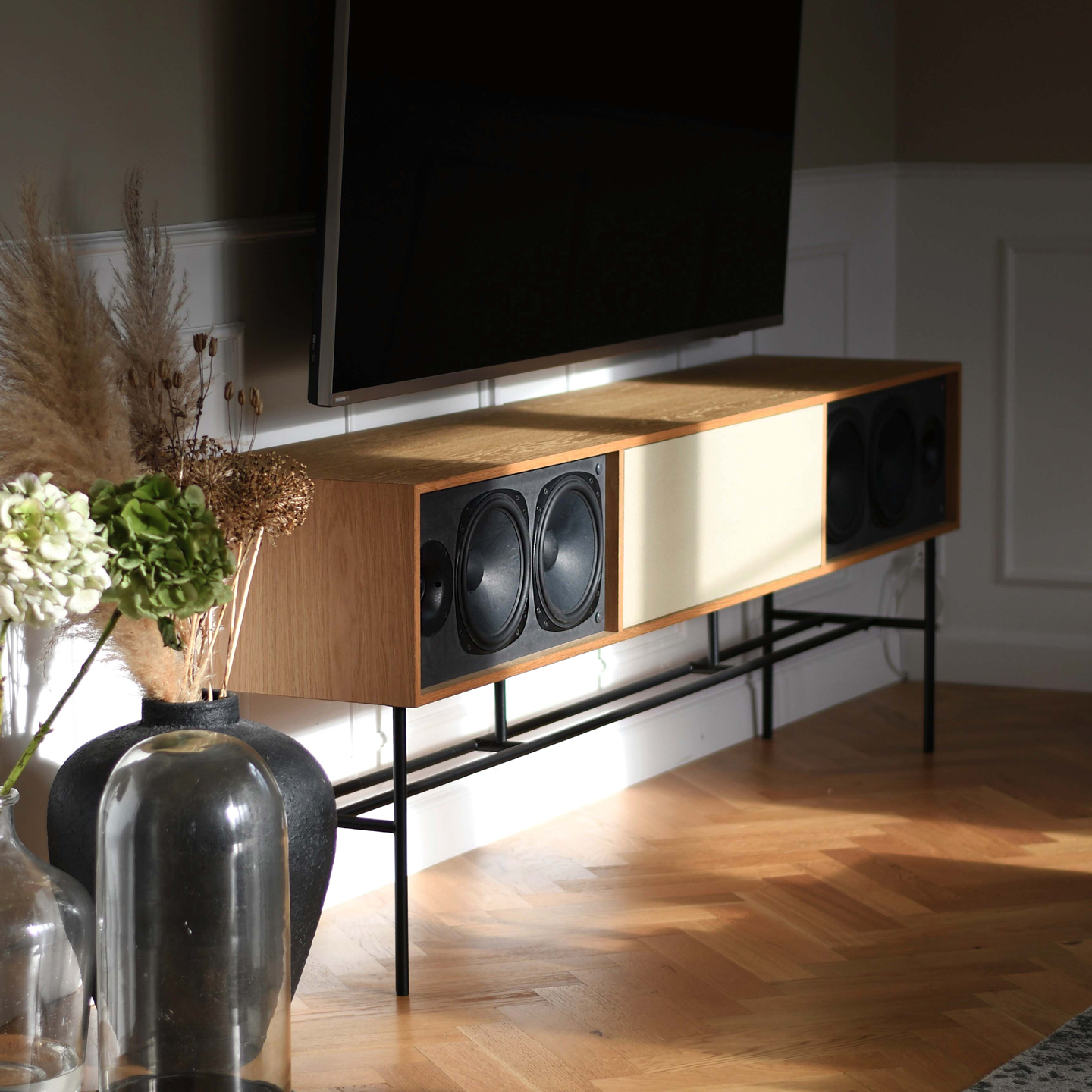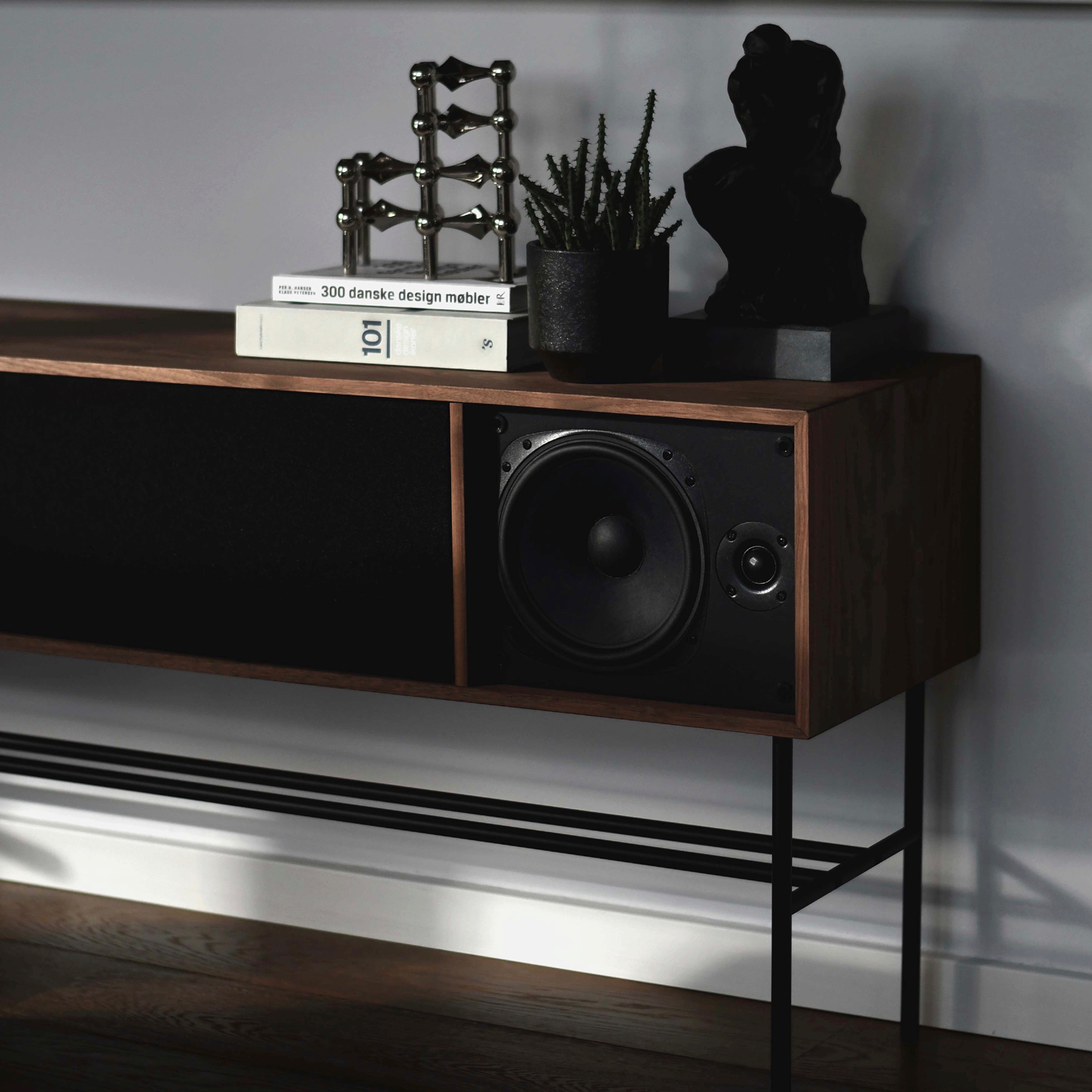 Sublime lydopplevelser og nordisk minimalisme smelter sammen i dette elegante lydmøblet, som er designet, utviklet og produsert i Danmark i eksklusive og bærekraftige materialer.